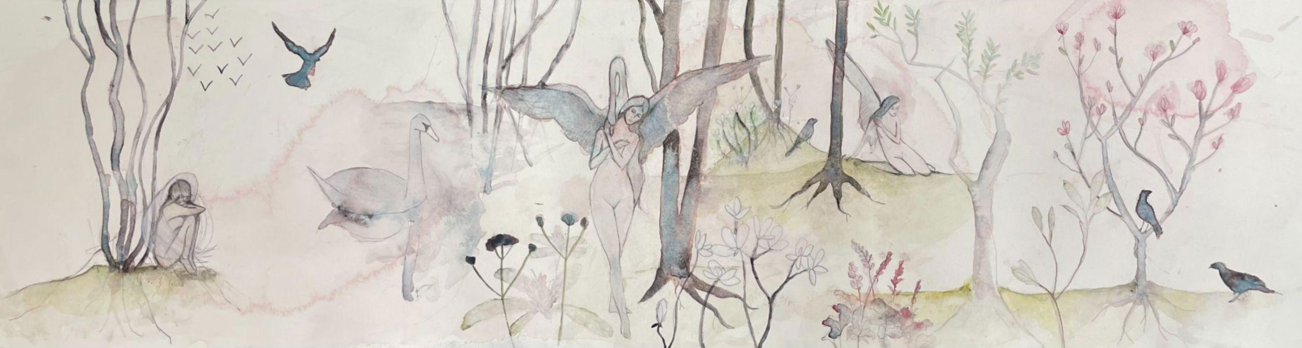 Rachel Shaw - Leda Transcendence, 42x384cm, Watercolour on paper